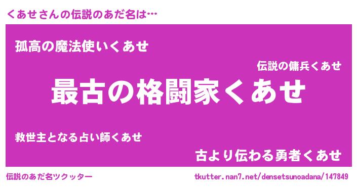 | 意味不明あだ名 | 『くあせフォーエバー』『永久保存くあせ』 |