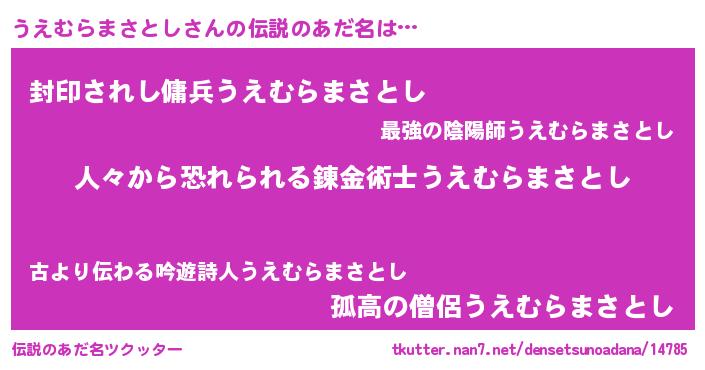 | ヒーロー風カッコイイあだ名 | 『正義の使者うえむらまさとし』 |