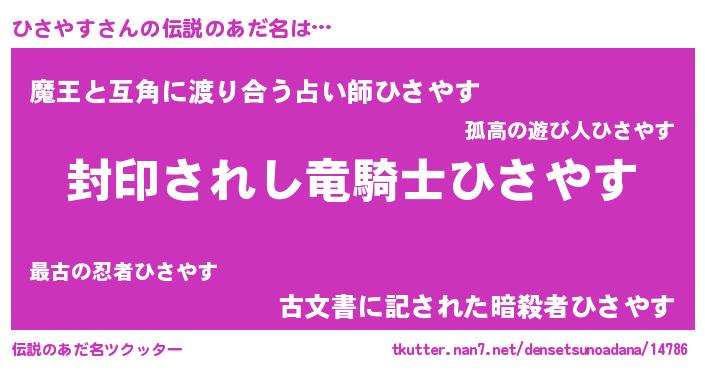 | 意味不明あだ名 | 『住所不定無職ひさやす(9歳)』 |