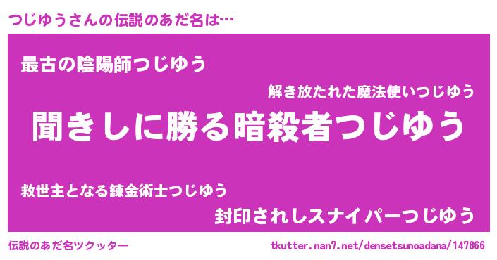 | ヒーロー風カッコイイあだ名 | 『ネオツジユウ』『ウルトラつじゆうマン』 |