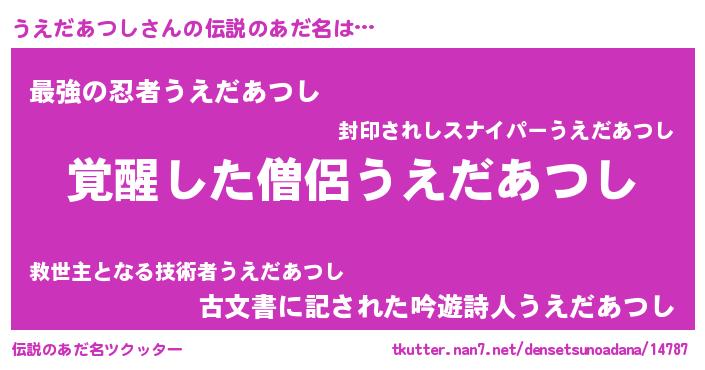| 意味不明あだ名 | 『とにかく怪しいうえだあつし』 |