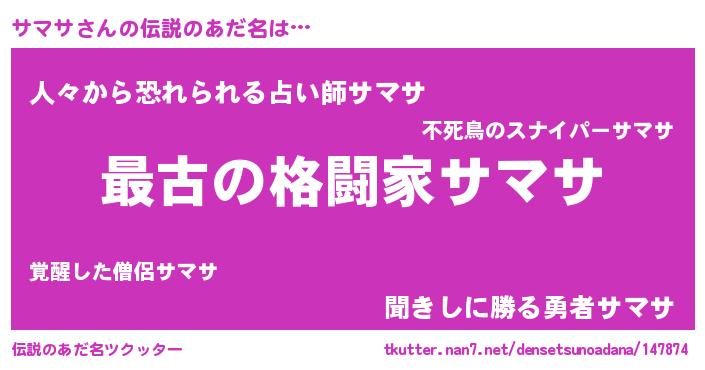 | 男性向けラノベタイトル風あだ名 | 『転生したらサマサだった件』 |