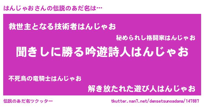 | ヘコむあだ名 | 『はんじゃお(小並感)』『はんぷりん』 |