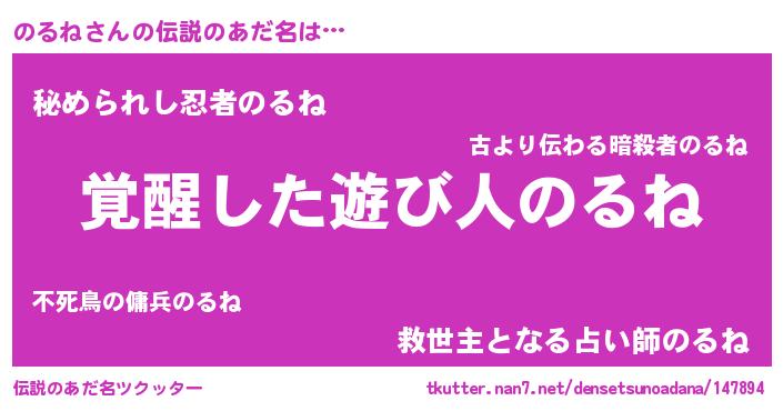 | ヒーロー風カッコイイあだ名 | 『幻影騎士ノル』『ウルトラのるねマン』 |