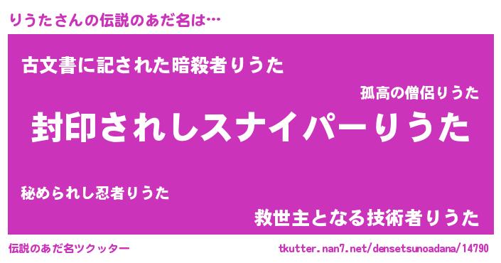 | 胡散臭い通販商品みたいなあだ名 | 『億万長者になれる霊験あらたかなお札…その名も「りうた」』 |