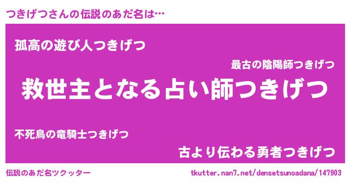 | 意味不明あだ名 | 『自称つきげつ』『ヨモギ科つきげつ属』 |