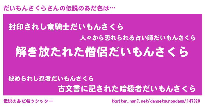 だいもんさくらさんの伝説のあだ名をツクッター!