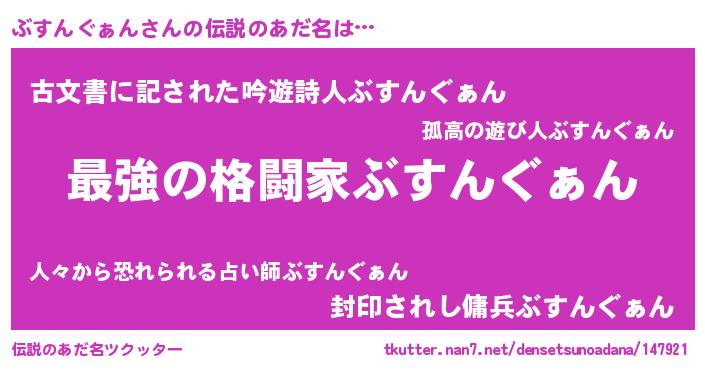 | ヒーロー風カッコイイあだ名 | 『ウルトラぶすんぐぁんマン』 |