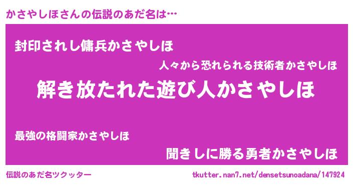 | ポケモン風あだ名 | 『ヒカサヤシホ』『メロカッサ』 |