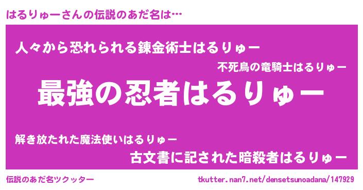 | 意味不明あだ名 | 『はるりゅーフォーエバー』 |
