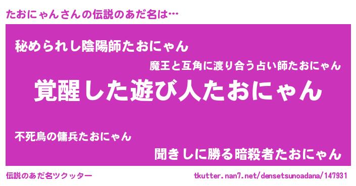| 男性向けラノベタイトル風あだ名 | 『たおにゃんに滅ぼされるだけの簡単なお仕事です』 |