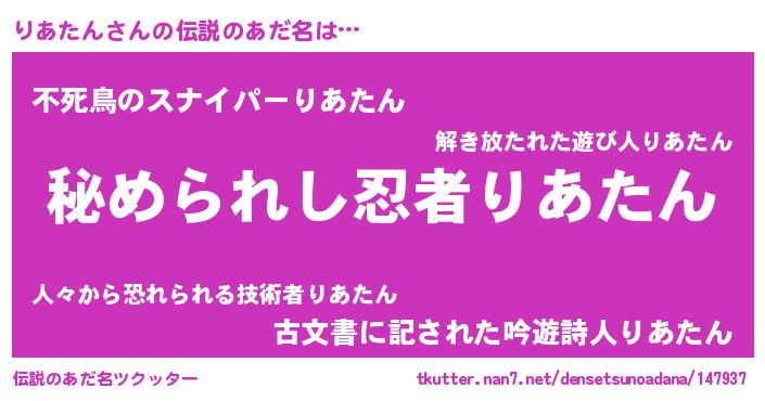 | 意味不明あだ名 | 『りあたんフォーエバー』『自称りあたん』 |