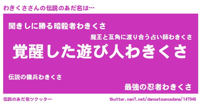 | 男性向けラノベタイトル風あだ名 | 『わきくさに滅ぼされるだけの簡単なお仕事です』 |
