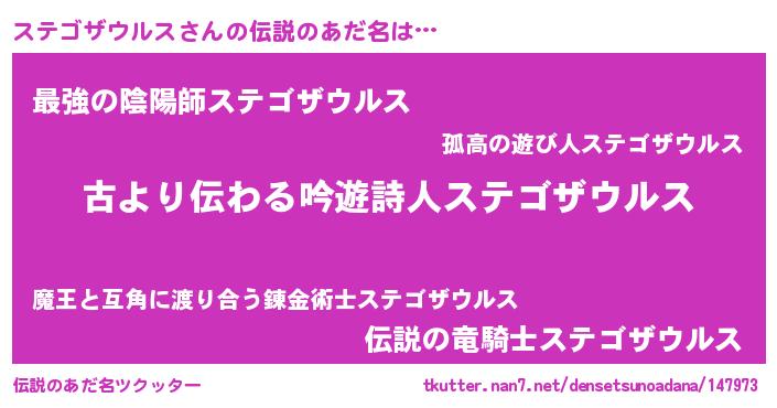 | 女子向けラノベタイトル風あだ名 | 『ステゴザウルスの契約王妃』 |