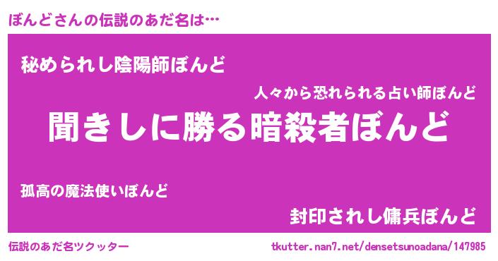 | ヘコむあだ名 | 『ぼんど(笑)』『つくし』『ぼんっ子』 |