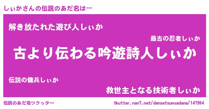 | 女子向けラノベタイトル風あだ名 | 『しぃかの契約王妃』『しぃか様がみてる』 |