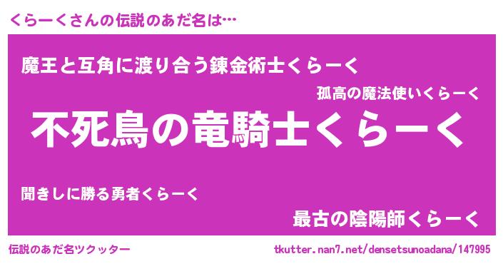 | 男性向けラノベタイトル風あだ名 | 『くらーくの憂鬱』 |
