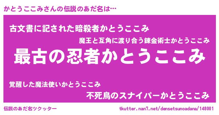 ヒーロー風カッコイイあだ名 | 『仮面カトダー』『ネオカトウココミ』 |