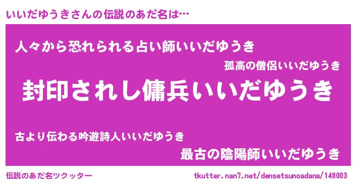 | 男性向けラノベタイトル風あだ名 | 『イイダユウキアートオンライン』 |