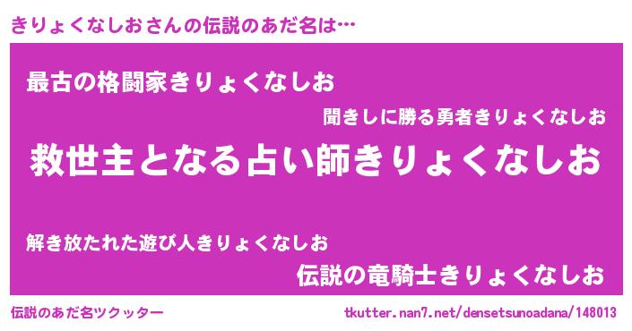 | ヒーロー風カッコイイあだ名 | 『天空の使者きりょくなしお』 |