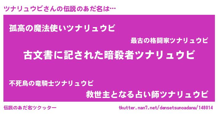 | 意味不明あだ名 | 『住所不定無職ツナリュウビ(47歳)』 |