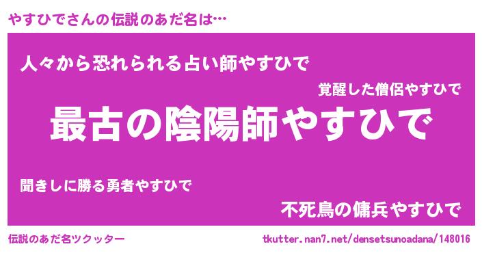 | ポケモン風あだ名 | 『ヤスヒダネ』『ヤスセウス』 |
