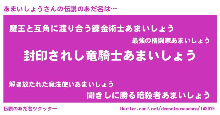 | ヒーロー風カッコイイあだ名 | 『スーパーアマイショウ』『仮面アマダー』 |