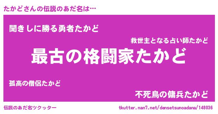 | ヒーロー風カッコイイあだ名 | 『ウルトラたかどマン』『仮面タカダー』 |