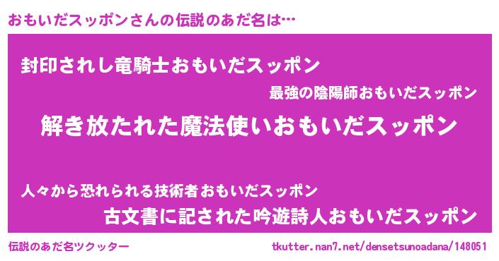 | 意味不明あだ名 | 『とにかく怪しいおもいだスッポン』 |