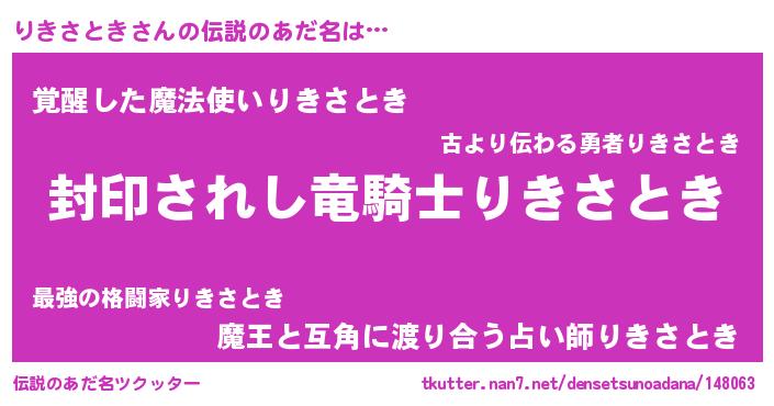 | 胡散臭い通販商品みたいなあだ名 | 『億万長者になれるブレスレット…その名も「りきさとき」』 |