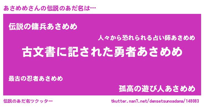 | ヒーロー風カッコイイあだ名 | 『ネオアサメメ』『スーパーアサメメ』 |