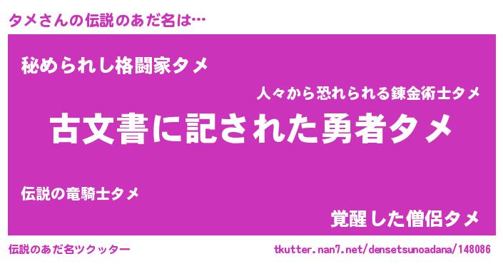 | ポケモン風あだ名 | 『タメキング』『タメゴンZ』 |
