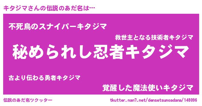 | ヒーロー風カッコイイあだ名 | 『ウルトラキタジママン』『魔戒騎士キタ』 |