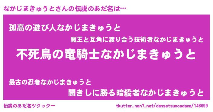 | 女子向けラノベタイトル風あだ名 | 『なかじまきゅうと姫と円卓の騎士』 |