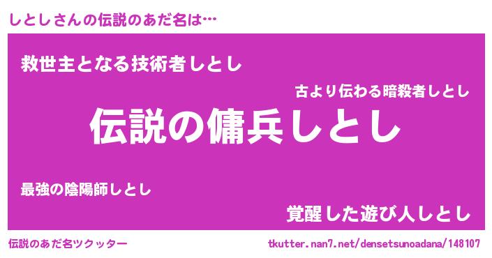 | ヒーロー風カッコイイあだ名 | 『スーパーシトシ』『正義の使者しとし』 |