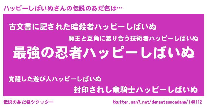 | 意味不明あだ名 | 『ハッピーしばいぬフォーエバー』 |