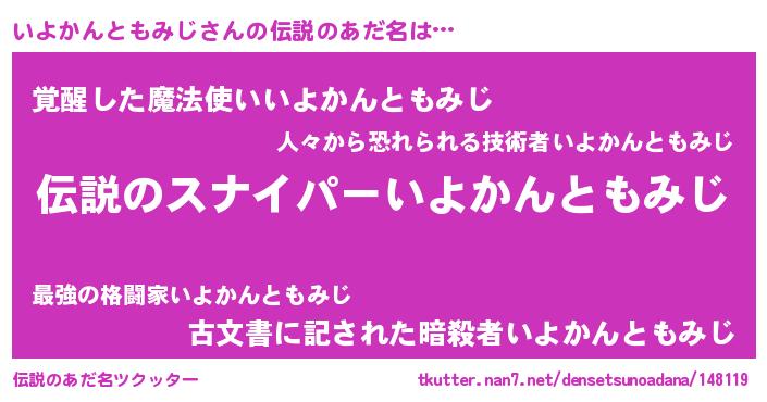 | ヒーロー風カッコイイあだ名 | 『スーパーイヨカントモミジ』 |