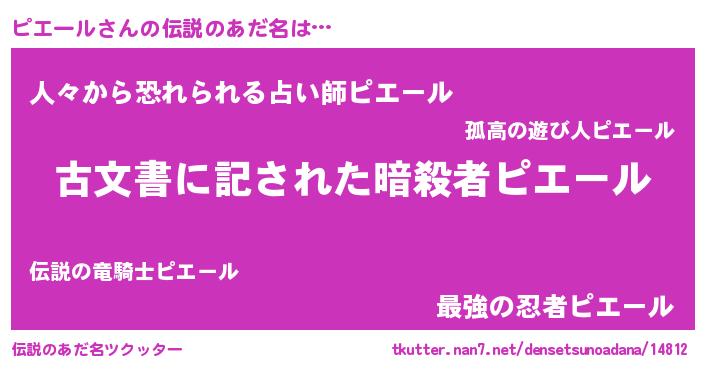 | 意味不明あだ名 | 『永久保存ピエール』 |