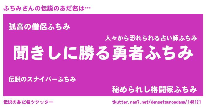 | 意味不明あだ名 | 『自称ふちみ』『永久保存ふちみ』 |