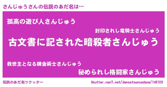 | 胡散臭い通販商品みたいなあだ名 | 『前代未聞の健康食品…その名も「さんじゅう」』 |