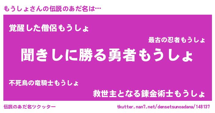 | 胡散臭い通販商品みたいなあだ名 | 『絶対に幸福をもたらす水素水…その名も「もうしょ」』 |