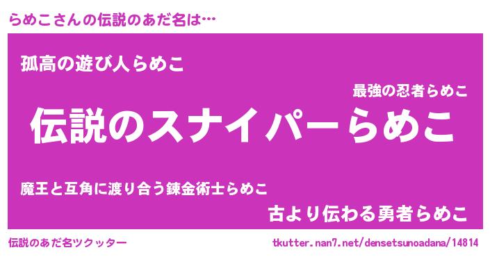 | ヒーロー風カッコイイあだ名 | 『仮面ラメダー』『スーパーラメコ』 |