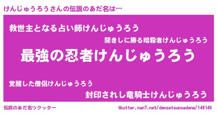 | 意味不明あだ名 | 『けんじゅうろうフォーエバー』 |