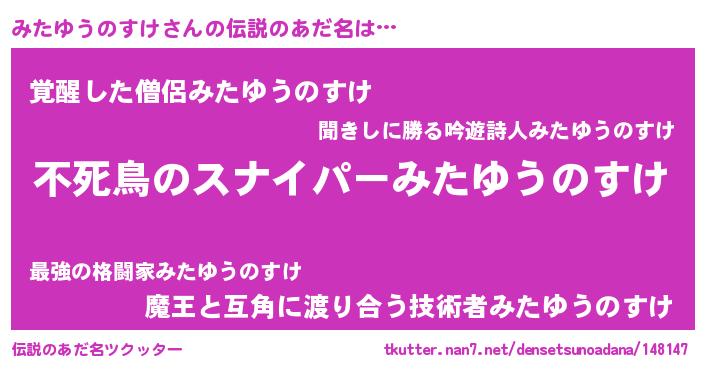| ヒーロー風カッコイイあだ名 | 『スーパーミタユウノスケ』 |