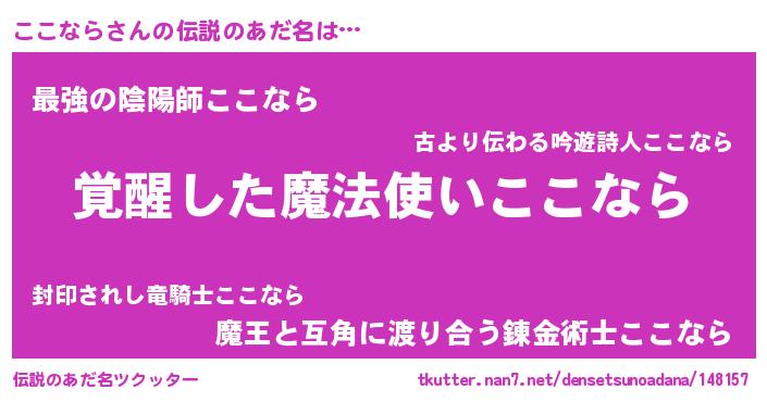 | 胡散臭い通販商品みたいなあだ名 | 『あなたにだけ特別に提供する100年もののヴィンテージワイン…その名も「ここなら」』 |