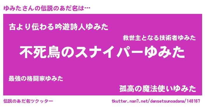 | ファンタジー風あだ名 | 『ユミフェル』『ユミディッシュ』 |