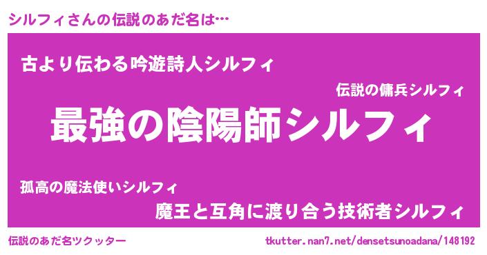 | 意味不明あだ名 | 『住所不定無職シルフィ(98歳)』 |