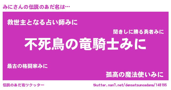 | 女子向けラノベタイトル風あだ名 | 『みに姫と円卓の騎士』『みに恋絵巻』 |