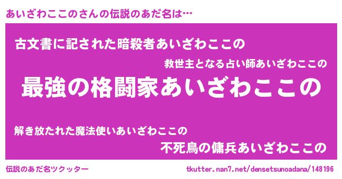 | ファンタジー風あだ名 | 『エターナルアイザワココノー』 |
