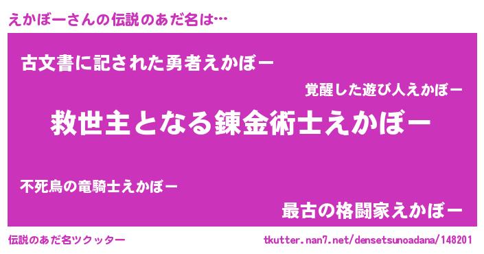 | 女子向けラノベタイトル風あだ名 | 『死神えかぼーの再婚』 |